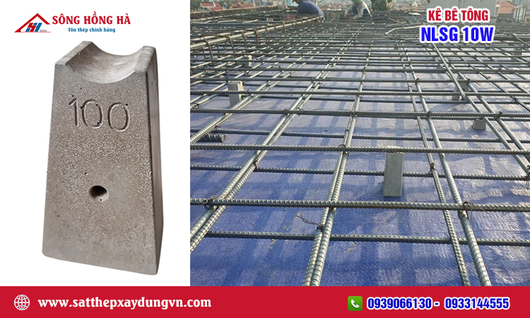 Kê bê tông NLSG 10W được thiết kế chuyên biệt cho các hạng mục móng và kê dàn thép sàn 150mm, giúp định vị cốt thép chính xác, tạo lớp bê tông bảo vệ đạt chuẩn 100mm, từ đó nâng cao độ bền kết cấu và độ an toàn cho công trình.